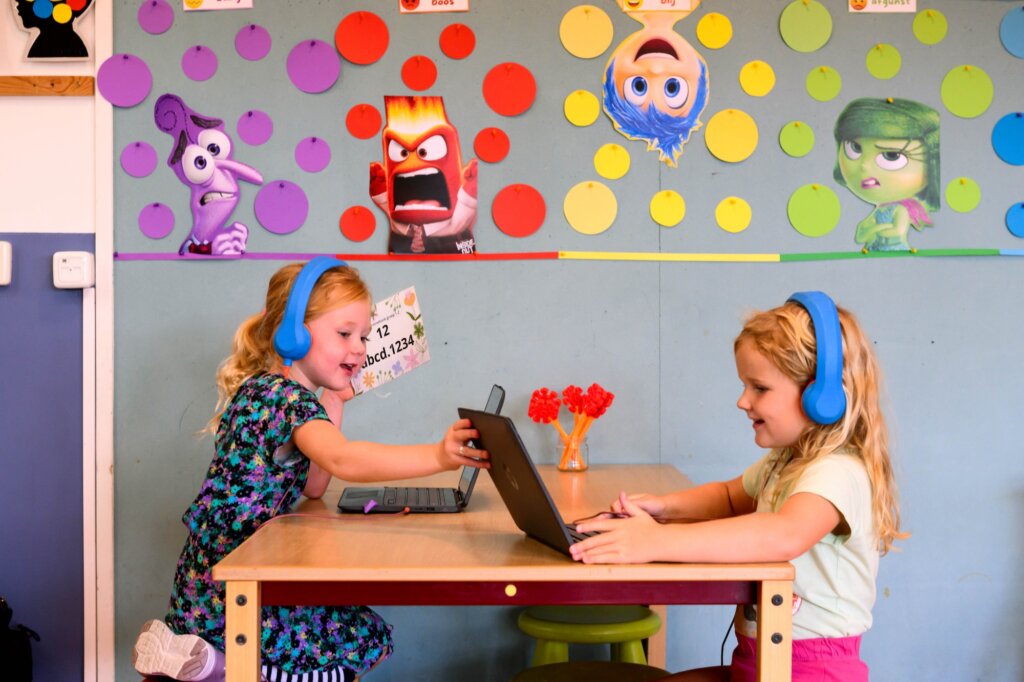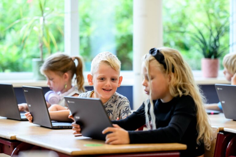 De lijn van ‘samen doen’ trekken we door in de groepen zelf. We hebben combinatiegroepen. Oudere en jongere kinderen zitten bij elkaar. Wat doet het met een kind, wanneer hij zijn kennis kan overdragen aan anderen? Of als kennis niet wordt aangereikt door een leerkracht, maar door een medeleerling? Het draagt bij aan een gevoel van trots enerzijds en van respect anderzijds. Dat zijn waardevolle lesmomenten die je vormen als mens.